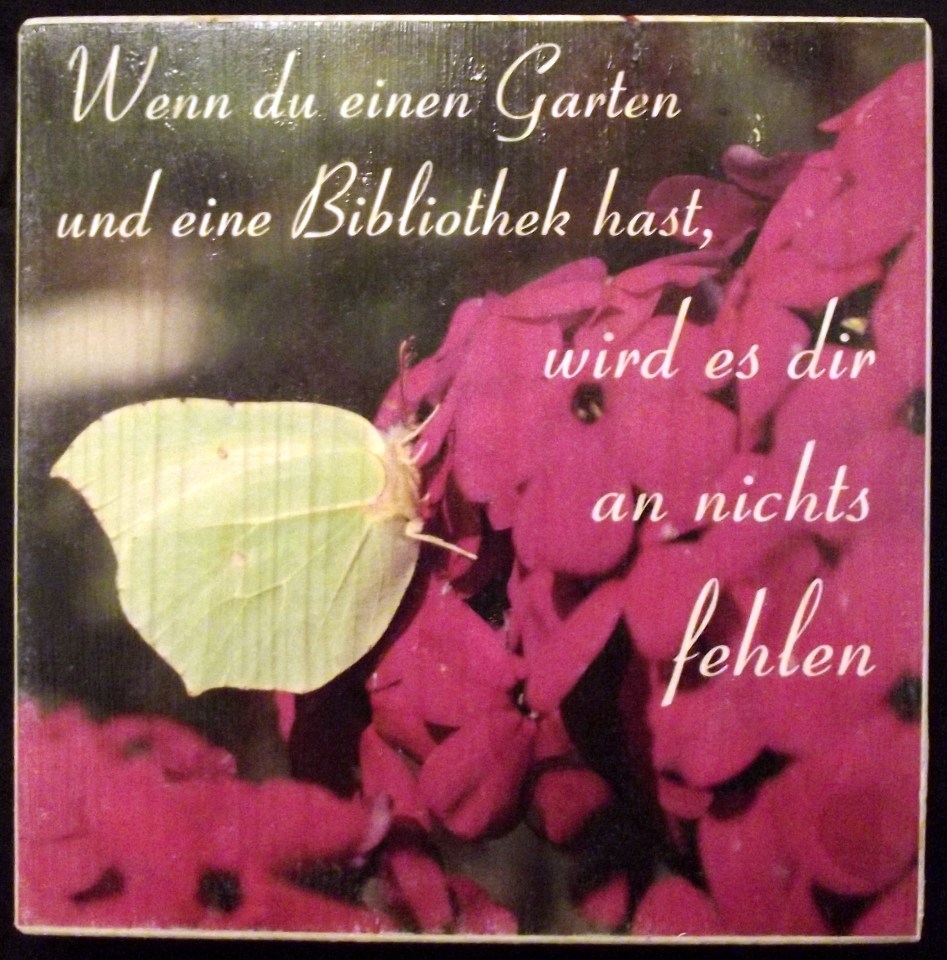 VON-WEGEN HOLZFOTO ← Zurück Weiter → Wenn du einen Garten und eine Bibliothek hast, wird es dir an nichts fehlen. 20 x 20cm 15€ (+3€ Versand)