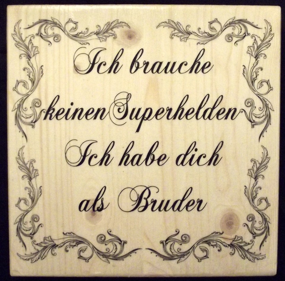 VON-WEGEN HOLZFOTO ← Zurück Weiter → Ich brauche keinen Superhelden – Ich habe dich als Bruder 20 x 20cm 15€ (+3€ Versand)