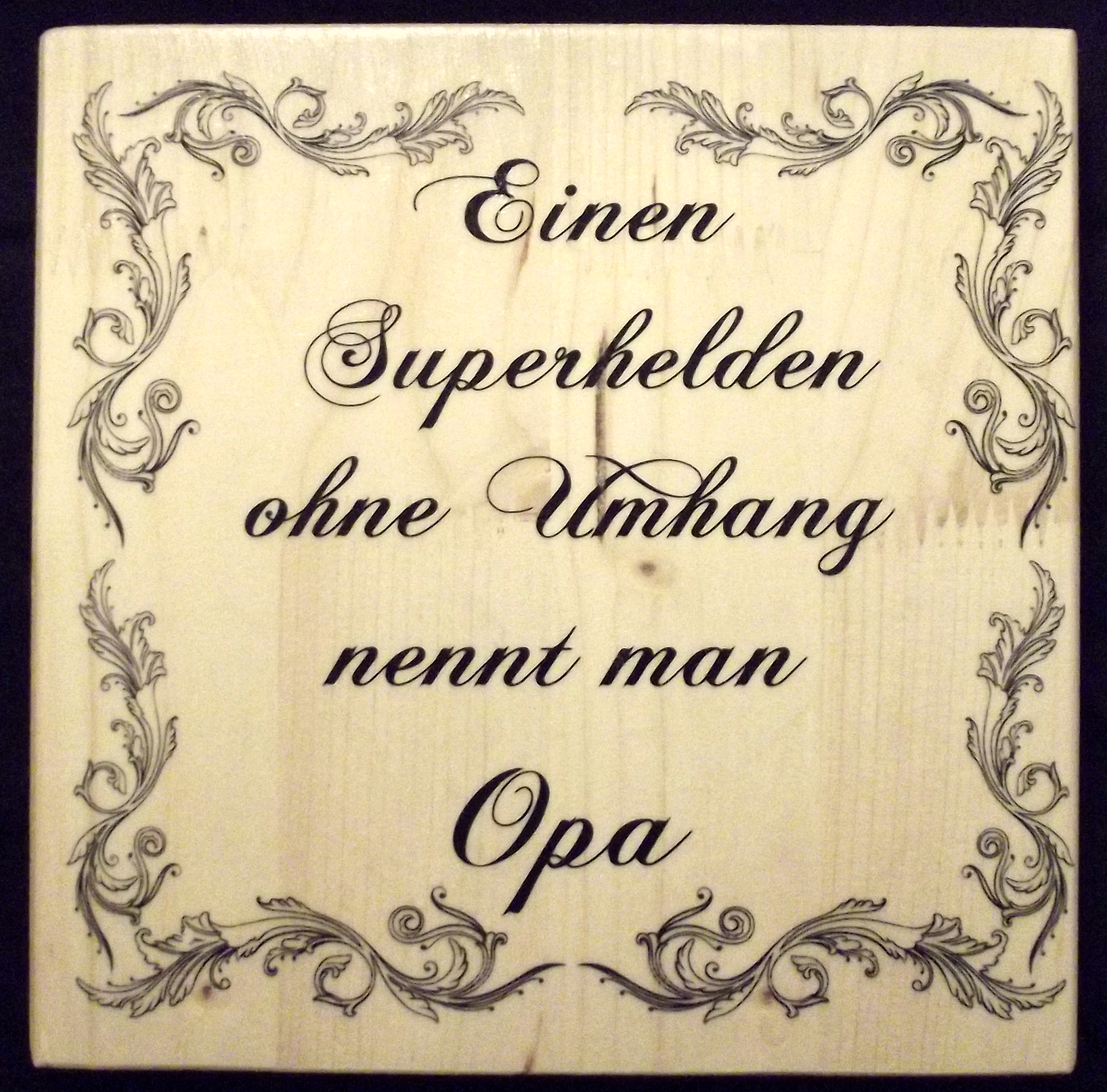 VON-WEGEN HOLZFOTO ← Zurück Weiter → Einen Superhelden ohne Umhang nennt man Opa 20 x 20cm 15€ (+3€ Versand)